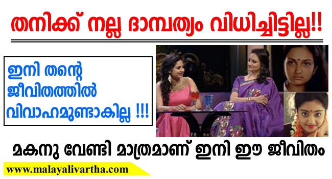 തനിക്ക് നല്ല ദാമ്പത്യം വിധിച്ചിട്ടില്ല. ഇനി തന്റെ ജീവിതത്തില് വിവാഹമുണ്ടാകില്ലെന്നും മകനു വേണ്ടി മാത്രമാണു ജീവിതമെന്നും ചാര്മിള പറഞ്ഞു. ഒപ്പം സിനിമാ മേഖലയില് നിന്നുണ്ടായ ഒരു തിക്താനുഭവത്തെക്കുറിച്ച് ഞെട്ടിക്കുന്ന വെളിപ്പെടുത്തലും ചാര്മിള നടത്തി . ചെറിയ പ്രായത്തില് അഭിനയിക്കാന് വന്ന സമയത്ത് ഈ മേഖലയില് നിന്ന് ഒരു മോശം അനുഭവവും തനിക്കുണ്ടായിരുന്നില്ല, എന്നാല് നാല്പത്തിരണ്ടു വയസുള്ള ഈ പ്രായത്തില് അങ്ങനെയൊന്നുണ്ടായി.