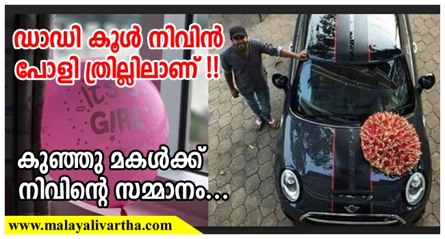 മലയാളത്തിലെ യുവ സൂപ്പര്താരമായ നിവിന് പോളിക്ക് പെണ്കുഞ്ഞ് ജനിച്ചത് ഈ അടുത്തിടെയാണ്. ഫെയ്സ്ബുക്ക് പേജിലൂടെയാണ് തനിക്ക് പെണ്കുട്ടി ജനിച്ച വിവരം താരം ആരാധകരെ അറിയിച്ചത്. തന്റെ കുഞ്ഞ് മകള്ക്ക് നിവിന് സമ്മാനമായി നല്കിയത് മിനികൂപ്പര് എസാണ്. ബ്രിട്ടീഷ് വാഹന വാഹന നിര്മാണ കമ്പനിയായ മിനിയുടെ കൂപ്പര് എസ് ബിഎംഡബ്ല്യുവിന്റെ ഉടമസ്ഥതയിലുള്ളതാണ്.