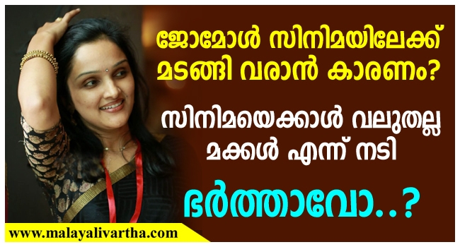 ജോമോള് സിനിമയിലേക്ക് മടങ്ങി വരാന് കാരണം? ജോമോള് മനസുതുറക്കുന്നു...