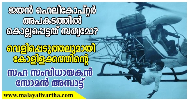 ജനപ്രിയ നായകനായിരുന്ന ജയന്റെ ദാരുണാന്ത്യത്തിനു ശേഷം ധാരാളം ഊഹാപോഹങ്ങള് നാട്ടില് പ്രചരിച്ചിരുന്നു. ജയന് അമേരിക്കയില് ജീവിക്കുന്നു എന്നും സന്യാസിയായി എന്നും അമ്മയ്ക്ക് ഇപ്പോഴും കത്തുകള് എഴുതുമെന്നും എല്ലാം അഭ്യൂഹങ്ങള് പ്രചരിച്ചിട്ടുണ്ട്. അന്ന് ആ ഹെലികോപ്റ്റര് അപടകസമയത്ത് ലൊക്കേഷനിലുണ്ടായിരുന്ന ജയനെ ആശുപത്രിയിലെത്തിച്ചവരില് പ്രധാനിയും കോളിളക്കത്തിന്റെ സഹസംവിധായകനുമായിരുന്ന പ്രസിദ്ധ സംവിധായകന് ഇപ്പോള് പ്രവാസിയായ സോമന് അമ്പാട്ട്.