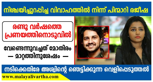 നടി രജീഷ വിജയനെതിരെ കടുത്ത ആരോപണവുമായി പ്രതിശ്രുത വരനായിരുന്ന അശ്വിന് രംഗത്ത്
