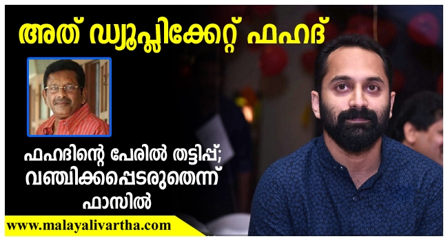ആ തട്ടിപ്പുകാരന് ഡ്യൂപ്ലിക്കേറ്റ് ഫഹദ്...ഫഹദിന്റെ പേരില് തട്ടിപ്പ്; വഞ്ചിക്കപ്പെടരുതെന്ന് മുന്നറിയിപ്പ്
