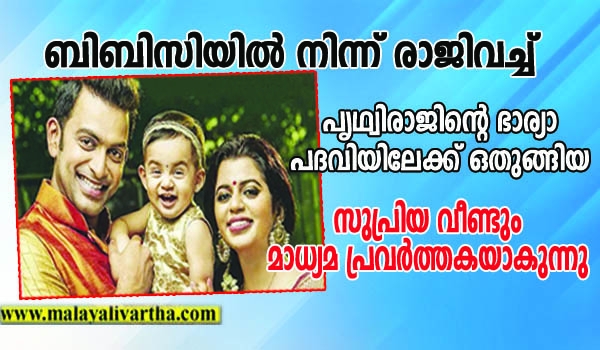 പൃഥ്വിരാജിന്റെ ഭാര്യ സുപ്രിയ വീണ്ടും ജേണലിസ്റ്റാകുന്നു