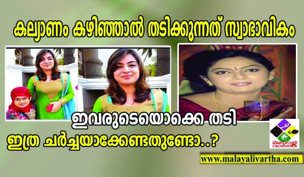 സിനിമാ താരങ്ങളുടെ സിനിമാ വിശേഷങ്ങള് അറിയുന്നതിനെക്കള് ആരാധകര്ക്ക് താത്പര്യം അവരുടെ വ്യക്തി ജീവിതത്തെ കുറിച്ച് അറിയാനാണ്. പ്രണയവും വിവാഹവും വിവാഹ മോചനവും കുടുംബ കലഹങ്ങളും.. എന്തിനേറെ നായികമാരുടെ തടി പോലും സംസാര വിഷയമാണ്. സമീപകാലത്ത് പല നായികമാരുടെയും തടി ആഗോള പ്രശ്നമായിട്ടുണ്ട്. ഏറ്റവുമൊടുവില് ശരണ്യ മോഹന് പ്രസവ ശേഷം തടിച്ചതായിരുന്നു വിഷയം. ശരണ്യമാത്രമല്ല.. വിവാഹ ശേഷവും അല്ലാതെയും നായികമാരുടെ തടി പ്രശ്നമായിട്ടുണ്ട്.. സമീപകാലത്ത് ചര്ച്ചയായ അത്തരം ചില 'തടി' കഥകളിതാ..