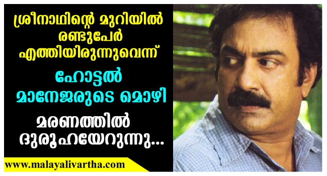 ശ്രീനാഥിന്റെ മരണത്തിന് തൊട്ടുമുമ്പ് രണ്ട് പേര് മുറിയിൽ എത്തിയിരുന്നു; ഞെട്ടിപ്പിക്കുന്ന വെളിപ്പെടുത്തലുമായി ഹോട്ടല് മാനേജർ