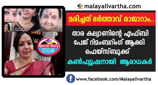 മരിച്ചുപോയവരുടെ ഫെയ്സ്ബുക്ക് അക്കൗണ്ടുകള്ക്ക് ഫെയ്സ് ബുക്ക് നല്കിയിരിക്കുന്ന ഫീച്ചറാണ് റിമംബറിംഗ്.മരണം തെളിയിക്കുന്ന വാര്ത്തയോ പേപ്പര് കട്ടിംഗോ ഫെയ്സ്ബുക്ക് അധികൃതരെ അറിയിച്ചാലാണ് അക്കൗണ്ട് റിമംബറിംഗ് ആക്കി മാറ്റുക. എന്നാല് കഴിഞ്ഞ ദിവസം മുതല് നടി താരാ കല്യാണിന്റെ ഫെയ്സ്ബുക്ക് പേജ് റിമംബറിംഗ് എന്നാണ് ഫെയ്സ്ബുക്കില് കാണിക്കുന്നത്. എന്നാല് ജീവിച്ചിരിക്കുന്ന താര കല്യാണിന്റെ അക്കൗണ്ട് എങ്ങനെ ഈ ഫീച്ചറിന് കീഴില് എത്തിയെന്ന അന്ധാളിപ്പിലാണ് സോഷ്യല് മീഡിയ.