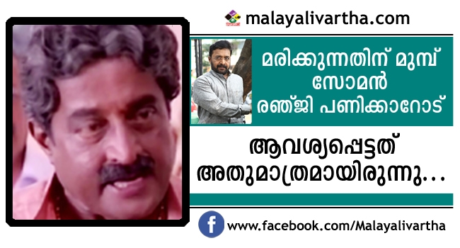 മരിക്കുന്നതിന് മുമ്പ് എനിക്കൊരു നല്ല റോള് താടാ; രഞ്ജി പണിക്കരോട് സോമൻ ആവശ്യപ്പെട്ട ആ റോൾ...