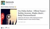 ജയറാമിന്റെ മകന് കാളിദാസിന് ആശംസനേര്ന്ന് മെഗാസ്റ്റാര് മമ്മൂട്ടി. തന്റെ ഫെയ്സ്ബുക്കില് കാളിദാസ് യായകനായിയെത്തുന്ന ഒരു പക്ക കഥൈ എന്ന ചിത്രത്തിന്റെ ടീസര് ഷെയര് ചെയ്തുകൊണ്ടാണ് മമ്മൂട്ടി കാളിദാസിന് ആ...