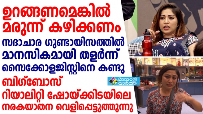 ബിഗ് ബോസില് രാത്രി ഉറങ്ങണമെങ്കില് മരുന്നു കഴിക്കണമെന്ന അവസ്ഥയായി. ഞാന് എത്ര ശക്തയായ സ്ത്രീയാണ് എന്നിട്ടും എങ്ങനെ ഇത് സംഭവിച്ചു എന്നൊക്കെ ചിന്തിക്കും.ബിഗ് ബോസ് ഹൗസില് നിന്ന് പുറത്തുവന്നിട്ടും സൈക്കോളജിസ്റ്റിനെ കാണാന് പോയി. സാധാരണ ഈ ഹോട്ടലില് വന്നാല് ഞാന് ഒറ്റയ്ക്കാണ് താമസിക്കുന്നത്. ഇത്തവണ ദിയയെ കൂട്ടിന് വിളിച്ചു. പക്ഷേ ബിഗ് ബോസിനു ശേഷം ക്ഷമ കുറച്ചുകൂടി. സാമൂഹമാധ്യമങ്ങളില് നേരിട്ട സദാചാര ഗുണ്ടായിസത്തിന് ആ സമയങ്ങളില് വിഷമം ഉണ്ടായിരുന്നു.