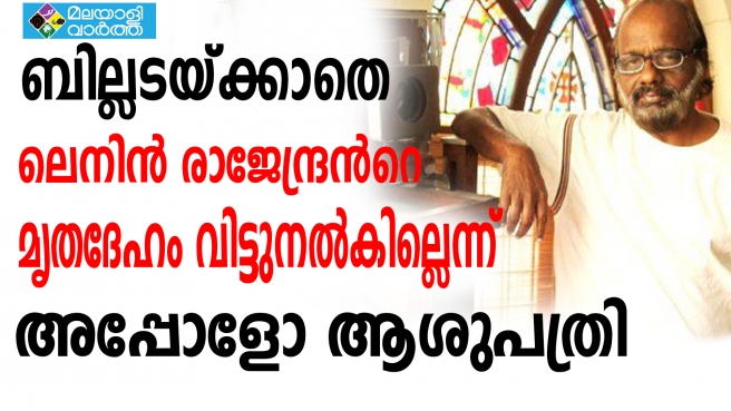 അന്തരിച്ച സംവിധായകൻ ലെനിൻ രാജേന്ദ്രന്റെ മൃതദേഹം ബില്ലടക്കാതെ വിട്ടുനൽകില്ലെന്ന് അപ്പോളോ ആശുപത്രി അധികൃതർ നിലപാടെടുത്തത് ഏറെ വേദനയുളവാക്കുന്നു