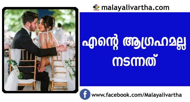ഇപ്പോഴിതാ തന്റെ ആഗ്രഹ പ്രകാരമല്ല നിക്കിന്റെ ആഗ്രഹ പ്രകാരമാണ് വിവാഹം നടന്നതെന്ന് തുറന്നു പറഞ്ഞിരിക്കുകയാണ് പ്രിയങ്ക. വിവാഹത്തെ പറ്റി തന്റെ ആഗ്രഹം മറ്റൊന്നായിരുന്നെന്നാണ് പ്രിയങ്ക ഒരഭിമുഖത്തില് പറഞ്ഞത്.