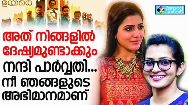 അത് നിങ്ങളില് ദേഷ്യമുണ്ടാക്കും , നന്ദി പാര്വ്വതി... നീ ഞങ്ങളുടെ അഭിമാനമാണ്; പാര്വതിയേയും ചിത്രത്തേയും അഭിനന്ദിച്ച് സൗത്ത് ഇന്ത്യന് താരം സാമന്ത