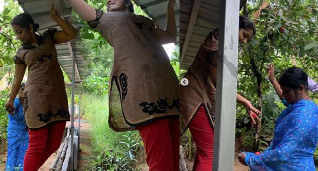 ഒട്ടും മെയ്ക്കപ്പില്ലാതെ, സാധാരണ കുർത്തി ധരിച്ച് ചാമ്പയ്ക്ക പറിക്കുന്ന താരത്തെ കണ്ട് ആരാധകർക്ക് സംശയം. ചിത്രത്തിലേത് പ്രിയതാരം നവ്യ തന്നെ അല്ലേ എന്ന്! നന്ദനത്തിലൂടെ നാടൻ പെൺകുട്ടിയായി വന്ന് ആരാധകരുടെ മനം കവർന്ന നവ്യ നായർ ഇപ്പോഴും തനി നാടൻ തന്നെയെന്നാണ് ആരാധകരുടെ കമന്റ്.