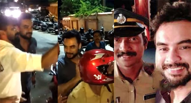 ടൊവിനോ തോമസിനെ ബൈക്കിൽ ഹൈക്കോടതിയിലെത്തിച്ച് പോലീസ്