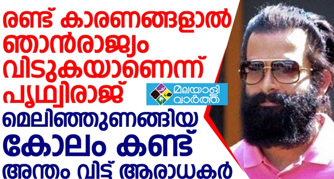 രണ്ട് കാരണങ്ങളാൽ ഞാൻ രാജ്യം വിടുകയാണെന്ന് പൃഥ്വിരാജ്; പൃഥ്വിയുടെ മേക്കോവറിൽ ഞെട്ടി ആരാധകർ ; ആട് ജീവിതത്തിനായുള്ള തയ്യാറെടുപ്പിൽ നടൻ; വൈറലായി താരത്തിന്റെ ഫേസ്ബുക് പോസ്റ്റ്