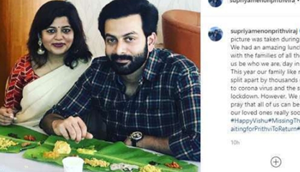 പ്രേക്ഷകരുടെ ഇഷ്ടതാരവും സംവിധായകനും കൂടിയാണ് പൃഥ്വി. താരത്തിന്റെ കുടുംബം ഉൾപ്പെടെ സോഷ്യൽ മീഡിയയിൽ സജീവമാണ്. ഇപ്പോഴിതാ വിഷു ദിനത്തില് പ്രിയപ്പെട്ടവന് അടുത്തില്ലാത്ത സങ്കടം പങ്കുവയ്ക്കുകയാണ് നടന് പൃഥ്വിരാജിന്റെ ഭാര്യയും നിര്മ്മാതാവുമായ സുപ്രിയാ മേനോന്.