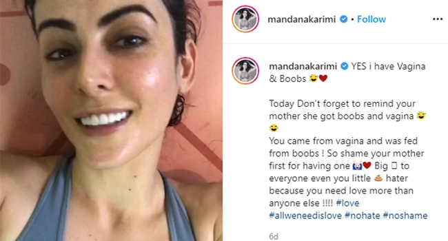 'കൂള് ഹൈ ഹം 3' എന്ന ബോളിവുഡ് ചിത്രത്തിലെ നായികയും ബിഗ് ബോസ് 9ാം സീസണിലെ റണ്ണര് അപ്പുമാണ് മന്ദന കരിമി കഴിഞ്ഞ ദിവസം പങ്കുവെച്ച ചിത്രത്തിന് അശ്ലീല കമന്റിട്ടയാള്ക്ക് ചുട്ടമറുപടി നല്കുകയാണ് നടി മന്ദന കരിമി.