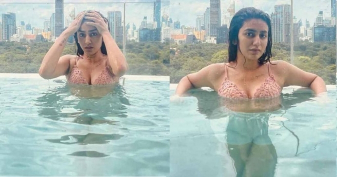 ഒരൊറ്റ കണ്ണിറുക്കൽ കൊണ്ട് ആദ്യ ചിത്രമായ ഒരു അഡാറ് ലവിലൂടെ ഒരുപാട് ആരാധകരെ സ്വന്തമാക്കിയ താരമാണ് പ്രിയാവാര്യർ. ഇപ്പോൾ മലയാള സിനിമയിൽ അത്ര സജീവമല്ലെങ്കിലും സോഷ്യൽമീഡിയയിൽ സജീവമാണ് താരം. ഇപ്പോഴിതാ നടി പങ്കുവെച്ച ഗ്ലാമര് ഫോട്ടോഷൂട്ട് ചിത്രങ്ങളാണ് സോഷ്യല്മീഡിയയില് വൈറലാകുന്നത്. സ്വിമ്മിങ് പൂളില് നിന്നുകൊണ്ടുള്ള ഹോട്ട് ചിത്രങ്ങളാണ് നടി പങ്കുവച്ചത്. പ്രിയയുടെ ബാങ്കോക്ക് യാത്രയ്ക്കിടെയാണ് ചിത്രങ്ങള് പകര്ത്തിയിരിക്കുന്നത്. ചിത്രങ്ങൾ നിമിഷങ്ങൾക്കുള്ളിൽ തന്നെ വൈറലായി മാറിയിരുന്നു. മലയാളിയായ പ്രശാന്ത് മാമ്പുള്ളി സംവിധാനം ചെയ്യുന്ന ഹിന്ദി ചിത്രം ശ്രീദേവി ബംഗ്ലാവ്, ഷെയ്ന് നിഗം നായകനായി എത്തിയ ‘ഇഷ്ക്’ സിനിമയുടെ തെലുങ്ക് റീമേക്ക് എന്നിവയാണ് നടിയുടെ പുതിയ പ്രോജക്ടുകള്.