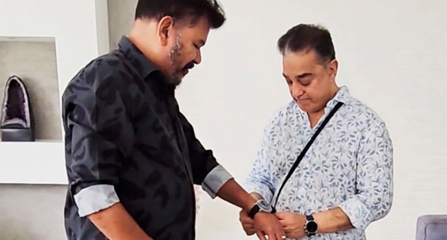 ഇന്ത്യന് 2 ന്റെ പ്രധാന ഭാഗങ്ങള് ഇന്ന് കണ്ടു, ഷങ്കറിന് എന്റെ എല്ലാവിധ ഭാവുകങ്ങളും നേരുന്നു... ഇന്ത്യന് 2 സംവിധായകന് ഷങ്കറിന് വാച്ച് സമ്മാനിച്ച് കമല് ഹാസന്