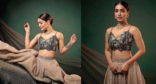 അതെല്ലാം തന്നെ വൈറല് ആകാറുമുണ്ട്. ഇപ്പോഴിതാ വൈറല് ആകുന്നത് താരം തന്റെ ഇൻസ്റ്റാഗ്രാമില് പങ്കുവെച്ച ഫോട്ടോയാണ്. പച്ച- റോസ് ഗോള്ഡ് കോമ്ബിനേഷനിലുള്ള ഡിസൈനര് ലെഹങ്കയില് പാര്ട്ടിവെയര് ലുക്കിലാണ് താരം. ബണ് ഹെയര് സ്റ്റൈലിലും ന്യൂഡ് മേക്കപ്പിലും മനോഹരിയാണ് സാനിയ. വെള്ള കല്ലുകളും മുത്തുകളും പതിപ്പിച്ച ആഭരണങ്ങളാണ് വസ്ത്രത്തിനൊപ്പം ആക്സസറിയായി ധരിച്ചിരിക്കുന്നത്. യാമിയാണ് മനോഹര ചിത്രങ്ങള് പകര്ത്തിയിരിക്കുന്നത്. നിരവധി പേരാണ് ഫോട്ടോയ്ക്ക് ലൈക്കും കമന്റുമായി എത്തിയത്.