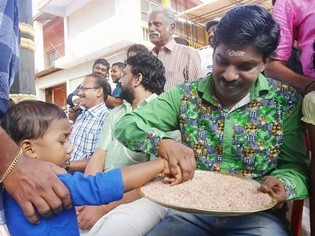 കുരുന്നുകളെ ആദ്യാക്ഷരം എഴുതിക്കാന് സന്തോഷ് പണ്ഡിറ്റ് എത്തി; താരത്തെ ഒരുനോക്ക് കാണാന് ആരാധകരുടെ വന് തിരക്ക്!