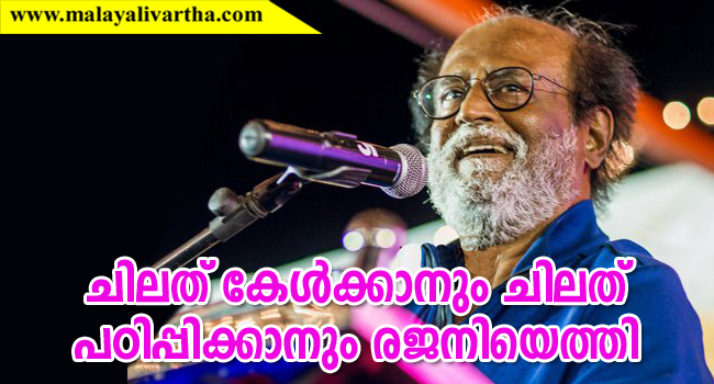 പുകവലിയും മദ്യപാനവും ഉപേക്ഷിക്കണമെന്ന് രജനി ആരാധകരോട് ആവശ്യപ്പെട്ടു. രാഷ്ട്രീയ പ്രവേശന സാധ്യതയും രജനി തള്ളിക്കളഞ്ഞില്ല. ആരാധകരെ രാഷ്ട്രീയക്കാര് ചൂഷണം ചെയ്യുന്നു. ഏത് നിയോഗവും താന് സത്യസന്ധമായി നിറവേറ്റും. നാളെ എന്താകുമെന്ന് ദൈവം തീരുമാനിക്കുമെന്ന് രജനി പറഞ്ഞു.