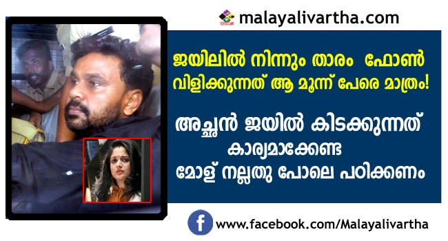 ജയിലില് നിന്നും ഫോണ്വിളിക്കാന് ദിലീപിന് അനുവാദമുണ്ട്. കോയിന് ബോക്സ് ഉപയോഗിച്ച് ദിലീപിന് തന്റെ അമ്മയേയും മകളെയും കാവ്യയേയും വിളിക്കാന് അനുവാദമുണ്ട്. അതും ജയില് സൂപ്രണ്ടിന്റെ അനുമതിയോടെ.