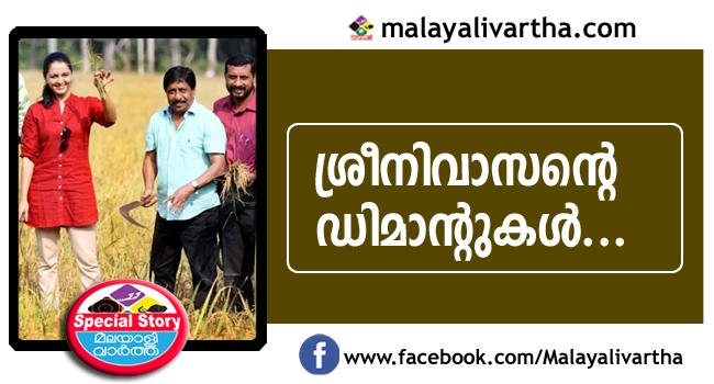 ഇപ്പോള് പുതിയ ശ്രീനിവാസനാണ്. സിനിമയ്ക്കിടയില് ജൈവകൃഷി തുടങ്ങി. ഏക്കറു കണക്കിന് കൃഷി ചെയ്തു. അല്ലറ ചില്ലറ അവാര്ഡും തരപ്പെടുത്തി. എവിടെയെങ്കിലും ഉദ്ഘാടനത്തിന് വിളിച്ചാല് പ്രതിഫലം വാങ്ങില്ലെന്നാണ് സിനിമാക്കാര് പറയുന്നത്. പകരം ചില ഡിമാന്റുകള് വയ്ക്കും.