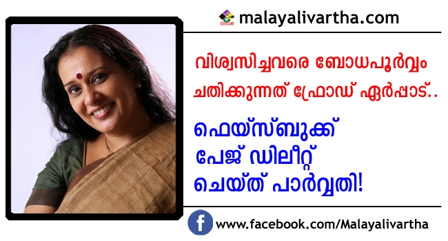 ഫേസ്ബുക്ക് പേജ് കെട്ടിപ്പൂട്ടി നടി പാര്വ്വതി