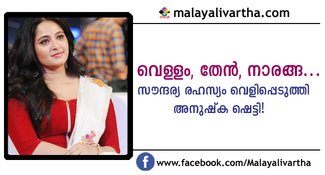 ഇപ്പോഴിതാ ആരാധകരുടെ ചോദ്യത്തിനുള്ള ഉത്തരവുമായി താരം തന്നെ രംഗത്തെത്തി. ഒരു തമിഴ് മാധ്യമത്തിന് നല്കിയ അഭിമുഖത്തിനിടയിലാണ് ചോദ്യം ഉയര്ന്നത്. വെള്ളം കുടിക്കുന്നതാണ് തന്റെ സൗന്ദര്യത്തിന്റെ പ്രധാന രഹസ്യം എന്നായിരുന്നു അനുഷ്ക പറഞ്ഞത്. ഒരു ദിവസം ആറു ലിറ്റര് വെള്ളം വരെ കുടിക്കും. കണ്ണില് കണ്ടതെല്ലാം വലിച്ചു വാരി തിന്നില്ല. ബ്രഡും തേനുമാണ് പ്രഭാത ഭക്ഷണമായി കഴിക്കുന്നതെന്നും താരം വ്യക്തമാക്കി.