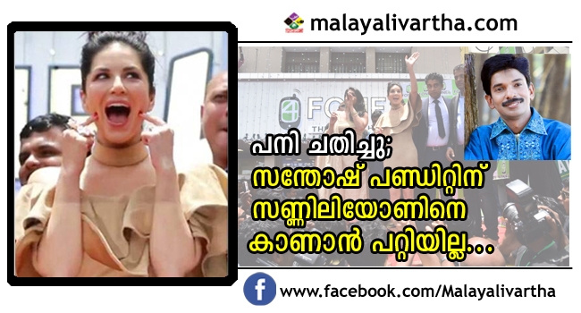 കേരളത്തിലെ യുവാക്കളെ പോലെ സന്തോഷ് പണ്ഡിറ്റും സണ്ണി ലിയോണിന്റെ കടുത്ത ആരാധികയാണ്. അവരോടൊപ്പം ഒരു സിനിമയില് അഭിനയിക്കണം എന്നത് താരത്തിന്റെ വലിയ ആഗ്രഹമാണ്. അതോ നടക്കുന്നില്ല. എന്നാല് 17-ന് അവര് കൊച്ചിയില് വരുന്നെന്ന് അറിഞ്ഞത് മുതല് എങ്ങനെയും നേരില് കാണണമെന്ന് അതിയായ മോഹമുണ്ടായിരുന്നു. പക്ഷെ, പനി വില്ലനായെത്തി.