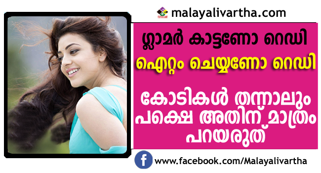 എത്രവലിയ റിസ്ക്കും ഏറ്റെടുക്കാനും, ഗ്ലാമര് വേഷങ്ങള് ചെയ്യാനും, ഐറ്റം ഡാന്സ് ചെയ്യാനും തയ്യാറാണ് കാജല് അഗര്വാള്. പക്ഷെ സ്ത്രീപക്ഷ ചിത്രങ്ങളോട് താത്പര്യമില്ലത്രെ. കോടികള് വാഗ്ദാനം ചെയ്തിട്ടും രണ്ട് ചിത്രങ്ങള് നടി ഉപേക്ഷിച്ചു എന്നാണ് പുതിയ വാര്ത്തകള്. പി. വാസു സംവിധാനം ചെയ്യുന്ന സ്ത്രീപക്ഷ ചിത്രത്തിലേക്ക് നായികയായി കാജലിനെ വിളിച്ചിരുന്നു. 2.5 കോടി രൂപ പ്രതിഫലവും വാഗ്ദാനം ചെയ്തു. പക്ഷെ അഭിനയിക്കാന് നടി തയ്യാറായില്ലത്രെ.