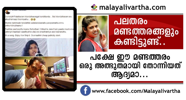 "പലതരം മണ്ടത്തരം കണ്ടിട്ടുണ്ട്. പക്ഷേ മണ്ടത്തരം ഒരു അത്ഭുതമായി തോന്നിയത് ഇതൊക്കെ നമ്മുടെ കേരളത്തിലെ ആളുകളോടാണല്ലോ പറയുന്നത് എന്ന് ഓർക്കുമ്പോഴാണ്. പാട്ടിനെ പാട്ടായിട്ട് കാണൂ സഹോദരി. അല്ലാതെ ജീവിതം പാടെ മാറ്റുന്ന (അല്ലെങ്കിൽ മാറ്റാൻ സാധ്യതയുള്ള) ഒരു ശസ്ത്രക്രിയായി കാണരുത്. ഇതൊരു പാട്ട് മാത്രമാണ്. അത് ആസ്വദിക്കാം അല്ലെങ്കിൽ വിട്ടുകളയാം. പബ്ലിസിറ്റി സ്റ്റണ്ട് ആയി അതിനെ കാണരുത്".