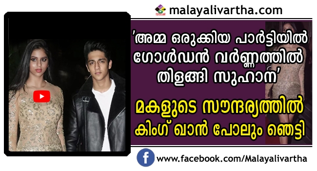 മലൈക അറോറ ഖാന്, സൂസന്ന ഖാന് തുടങ്ങി പലരും പാര്ട്ടിക്ക് എത്തിയെങ്കിലും ഏവരുടെയും ശ്രദ്ധയാകര്ഷിച്ചത് സുഹാന തന്നെയായിരുന്നു. ഫാഷന് കൊണ്ടും ആത്മവിശ്വാസം കൊണ്ടും 17 കാരിയായ സുഹാന ഇതിനോടകം തന്നെ ബോളിവുഡിന്റെ മനം കവര്ന്നിട്ടുണ്ട്.