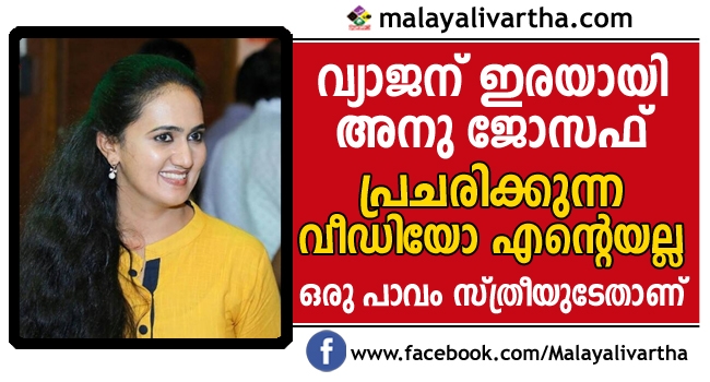 അഭിനേത്രിയും അവതാരികയുമായ അനു ജോസഫിന്റെ പേരില് വ്യാജ വീഡിയോ പ്രചരിക്കുന്നുണ്ട്. എന്നാല് ഇതിന്റെ സത്യാവസ്ഥ വിശദീകരിച്ച് താരം തന്നെ രംഗത്ത് എത്തിയിരിക്കുകയാണ്.