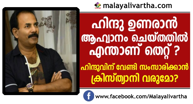 ഹിന്ദു ഉണരാന് ആഹ്വാനം ചെയ്തതില് എന്താണ് തെറ്റെന്ന മറുചോദ്യത്തോടെ കലാപാഹ്വാനത്തെ ന്യായീകരിച്ച് മേജര് രവി വീണ്ടും...