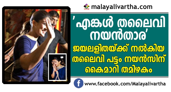 ജയലളിതയ്ക്ക് നല്കിയ തലൈവി പട്ടം തമിഴകത്തിന്റെ ലേഡി സൂപ്പര് സ്റ്റാര് നയൻസിന് കൈമാറി തമിഴകം