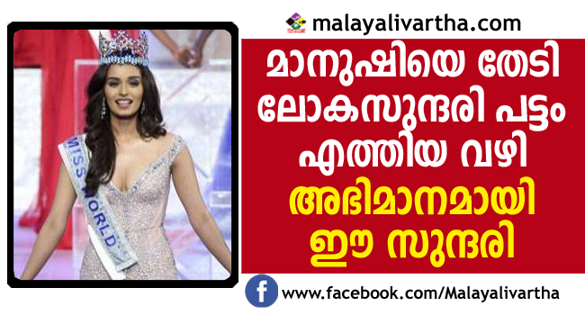 17 വര്ഷത്തെ സുദീര്ഘമായ കാത്തിരിപ്പിനുശേഷമാണ് ഇന്ത്യന് മണ്ണിലേക്ക് ലോകസുന്ദരിപ്പട്ടം എത്തുന്നത്. റീത്താ ഫാരിയയില് തുടങ്ങി ബോളിവുഡ് താരം പ്രിയങ്ക ചോപ്രയില് അവസാനിച്ച ഇന്ത്യന് സുന്ദരിമാരുടെ ഗണത്തിലേക്കാണ് മാനുഷിയും പദമൂന്നുന്നത്.