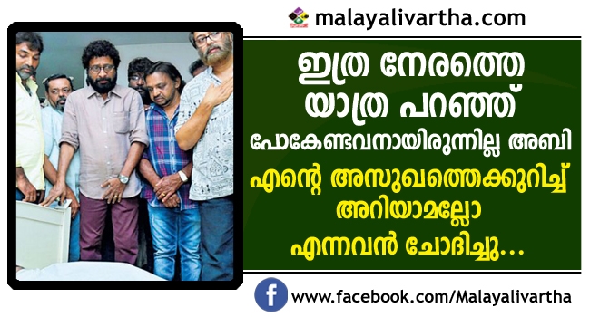 ഇത്ര നേരത്തെ യാത്ര പറഞ്ഞു പോകേണ്ടവനായിരുന്നില്ല അബി. അവനു കുറച്ചുകൂടി സമയം ലഭിക്കണമായിരുന്നു. അബിയുടെ മകൻ ഷെയ്ൻ നിഗം മലയാള സിനിമയിൽ ചുവടുറപ്പിക്കുന്നതേയുള്ളൂ. ഇതിനകം നല്ല വേഷങ്ങൾ അവനു ചെയ്യാനായി. ‘പറവ’യിൽ അവന്റെ പ്രകടനം ഞാൻ നേരിട്ടുകണ്ടതാണ്. ആ കുട്ടിക്ക് മലയാള സിനിമയിൽ ഉയർച്ചയുണ്ട്. ആ ഉയർച്ച അബിക്ക് നേരിട്ടു കാണാനായില്ലല്ലോ എന്നതാണെന്റെ സങ്കടം.