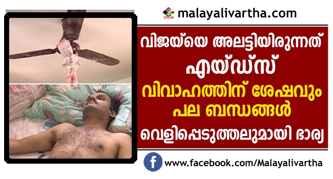 വിജയ് എച്ച്ഐവി പോസിറ്റീവ് ആണെന്ന് ഒരു പെണ്കുട്ടി തന്നോട് പറഞ്ഞെന്നാണ് വനിത വെളിപ്പെടുത്തിയത്. മാത്രമല്ല, വിജയ്ക്ക് വിവാഹേതര ബന്ധങ്ങള് ഉണ്ടായിരുന്നു എന്നും താന് അതിന് സാക്ഷിയാണെന്നും വനിത പ്രതികരിച്ചിട്ടുണ്ട്. കുട്ടിയെ കാണാന് താന് സമ്മതിച്ചില്ലെന്ന റിപ്പോര്ട്ടുകള് കള്ളമാണെന്നും വനിത പറയുന്നു. മരിക്കുന്നതിന് തൊട്ടുമുമ്പ് വിജയ് ഒരു സെല്ഫി വീഡിയോ എടുത്തിരുന്നെന്നും അതില് തന്റെ മകളെ കാണാന് പോലും ഭാര്യയായ വനിത സമ്മതിക്കുന്നില്ലെന്നും പറഞ്ഞതായി റിപ്പോര്ട്ടുകളുണ്ട്.