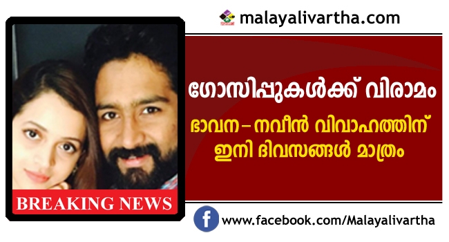നവീൻ ഇനി ഭാവനയ്ക്ക് സ്വന്തം; വിവാഹ തീയതി നിശ്ചയിച്ചു