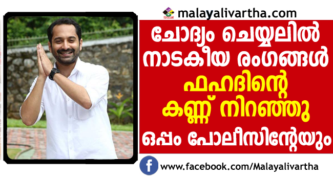 കേസുമായി ബന്ധപ്പെട്ട ചോദ്യംചെയ്യലിന് രാവിലെ പത്തുമണിയോടെയാണ് പോലീസ് ആസ്ഥാനത്തെ ക്രൈംബ്രാഞ്ച് ഓഫീസില് ഫഹദ് ഫാസില് എത്തിയത്. ഐജിയും എസ്പിയും അടങ്ങുന്ന സംഘമാണ് ചോദ്യം ചെയ്തത്.