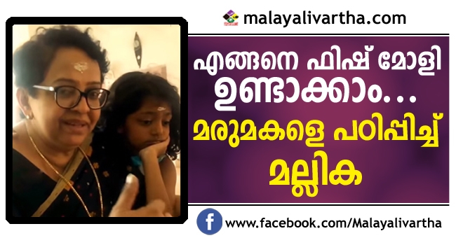 പൂര്ണ്ണിമയ്ക്ക് ഫിഷ് മോളി റസിപി പഠിപ്പിച്ച് മല്ലിക സുകുമാരൻ; വീഡിയോ സോഷ്യൽ മീഡിയയിൽ വൈറൽ