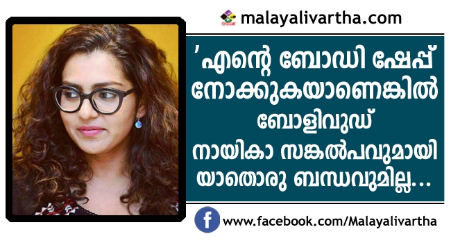 ഞാനൊരു ഭക്ഷണപ്രിയയാണ്. ബിരിയാണയൊക്കെ വലിയ ഇഷ്ടം. നന്നായി ഭക്ഷണം കഴിക്കും. ആരോഗ്യവതിയായിരിക്കുക എന്നതിനപ്പുറം മറ്റൊരു ക്രമീകരണവും ശരീരത്തിനില്ല. എന്റെ ബോഡി ഷേപ്പ് നോക്കുകയാണെങ്കില് ബോളിവുഡ് നായികാ സങ്കല്പവുമായി യാതൊരു ബന്ധവുമില്ല. എനിക്ക് ബോളിവുഡ് സിനിമയില് സ്വീകരണം ലഭിക്കില്ല. അതുകൊണ്ട് ഞാന് ശരീരം ഷേപ്പ് ആക്കാനൊന്നും പോകുന്നില്ല. എവിടെയും എത്തിപ്പെടണം എന്നെനിക്ക് ധൃതിയില്ല.
