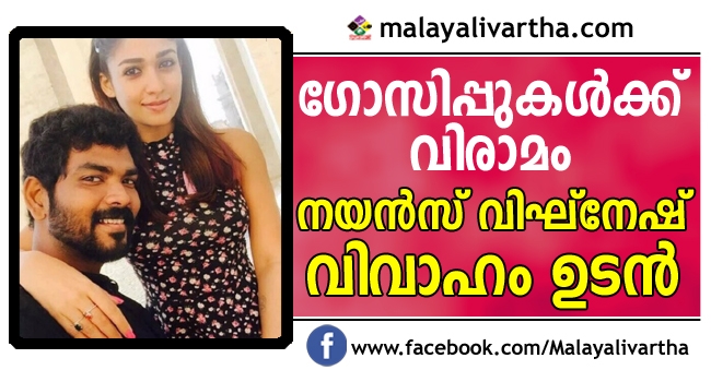 രണ്ട് കുടുംബങ്ങളുടെയും ആശിര്വാദത്തോടെ വിദേശത്ത് വച്ച് വിവാഹം നടക്കുമെന്നാണ് റിപ്പോര്ട്ടുകള്. ഇതേക്കുറിച്ചു വിഘ്നേഷോ നയന്താരയോ പ്രതികരിച്ചിട്ടില്ല. ഈ മൗനം വാര്ത്തയുടെ സത്യത്തിലേക്കാണ് വിരള് ചുണ്ടുന്നതെന്നാണ് സംസാരം. വിഘ്നേഷ് ഒരുക്കിയ നാനും റൗഡി താന് എന്ന ചിത്രത്തില് നായന്സ് ആയിരുന്നു നായിക. അതിന് ശേഷമാണ് ഇരുവരുടെയും പേരുകള് ചേര്ത്ത് വച്ച് ഗോസിപ്പുകള് ആരംഭിച്ചത്. ഈ പ്രചരണങ്ങളോടൊന്നും ഇരുവരും പ്രതികരിച്ചിട്ടില്ല.