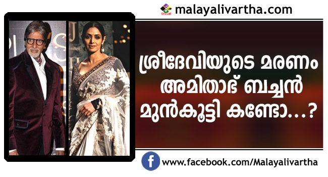 ഇന്നലെ രാത്രി 11.45ന്റെ ബച്ചന്റെ ട്വീറ്റ് വന്ന് 20 മിനിറ്റുകള്ക്കകം ശ്രീദേവിയുടെ മരണവാര്ത്ത കുടുംബം സ്ഥിരീകരിച്ചിരുന്നു. 'എന്താണെന്നറിയില്ല, എന്തോ സംഭവിക്കാന് പോകുന്നത് പോലെ, പേടിയാകുന്നു'- ഇങ്ങനെയായിരുന്നു ശ്രീദേവിയുടെ മരണസമയത്തെ അമിതാഭ് ബച്ചന്റെ ട്വീറ്റ്. ബച്ചന്റെ ട്വീറ്റ് വന്നിട്ട് 20 മിനിറ്റുകള്ക്കകം മരണവാര്ത്ത ഒദ്യോഗികമായി പുറത്തു വന്നതോടെ ബച്ചന്റെ ആറാം ഇന്ദ്രിയം ഉണര്ന്നു പ്രവര്ത്തിച്ചെന്നാണ് ആരാധകരുടെ കമന്റ്.