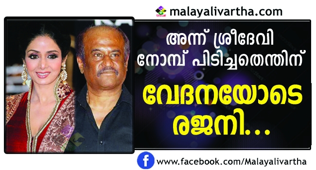 സിനിമാരംഗത്തുനിന്നും നിരവധിപ്പേരാണ് ശ്രീദേവിക്ക് അനുശോചനമറിയിച്ചും അവരുമായുള്ള ഓർമ്മകൾ പങ്കുവച്ചും രംഗത്തെത്തിയത്. ഇപ്പോഴിതാ രജനി കാന്തിനു വേണ്ടി ശ്രീദേവി നോമ്പെടുത്ത വാർത്തയാണ് സമൂഹമാധ്യമങ്ങളിൽ തരംഗമായിക്കൊണ്ടിരിക്കുന്നത്. റാണ എന്ന ചിത്രത്തിന്റെ ഷൂട്ടിംഗിനിടെ നടന്ന ഒരു സംഭവമാണ് ഇപ്പോള് ദേശീയ മാധ്യമങ്ങള് റിപ്പോര്ട്ട് ചെയ്യുന്നത്. ചിത്രീകരണത്തിനിടെ ഗുരുതരമായ അസുഖം കാരണം ചികിത്സയിലായിരുന്ന രജനികാന്തിനെ അസുഖത്തെ തുടര്ന്ന് അവിടുത്തെ ഒരു സ്വകാര്യ ആശുപത്രിയില് പ്രവേശിപ്പിച്ചിരുന്നു. അസുഖം കൂടിയതിനെ തുടര്ന്ന് സിംഗപൂരിലെ ആശുപത്രിയിലേക്ക് മാറ്റി. ഈ വിവരം അറിഞ്ഞ ശ്രീദേവി വളരെയധികം ദു:ഖിതയായി. തുടര്ന്ന് അസുഖം പെട്ടെന്ന് ഭേദമാകാന് വേണ്ടി നോമ്പ് നോല്ക്കുകയായിരുന്നു. രജനികാന്ത് രോഗത്തില് നിന്ന് മുക്തി നേടിയ ശേഷമാണ് ശ്രീദേവി നോമ്പ് നോറ്റ കാര്യം പുറത്തറിയുന്നത്. ശൃദ്ധി സായി ബാബയോട് പ്രാര്ത്ഥിച്ച ശ്രീദേവി രജനികാന്തിനായി ഒരാഴ്ച നോമ്പ് അനുഷ്ടിച്ചതായി ഡെക്കാന് ക്രോണിക്കിളാണ് റിപ്പോര്ട്ട് ചെയ്യുന്നത്.