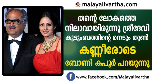 അര്ജുന്റെയും അന്ഷുലയുടെയും പൂര്ണ്ണ പിന്തുണ ലഭിച്ചതായും തനിക്കും മക്കളായ ഖുശിയ്ക്കും ജാന്വിയ്ക്കും അവര് താങ്ങായിരുന്നുവെന്നും ബോണി. നികത്താനാകാത്ത നഷ്ടം അഭിമുഖീകരിക്കാന് ഞങ്ങള് കുടുംബത്തോടെ ശ്രമിക്കുകയാണെന്നും ബോണി കപൂര് വ്യക്തമാക്കി. തങ്ങളുടെ ലോകത്തെ നിലാവായിരുന്നു ശ്രീദേവി. അവര് നടിയായിരുന്നു. എന്നാല് തനിയ്ക്ക് അവള് പ്രണയിനിയായിരുന്നു, തങ്ങളുടെ രണ്ട് മക്കളുടെ അമ്മയായിരുന്നു...
