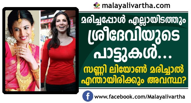 ശ്രീദേവിയുടെ മരണത്തിന് ശേഷം എല്ലാ ചാനലുകളിലും ശ്രീദേവിയുടെ പാട്ടുകളും വീഡിയോ ക്ലിപ്പുകളുമാണ്; സണ്ണി ലിയോണ് മരിച്ചാല് എന്തായിരിക്കും?