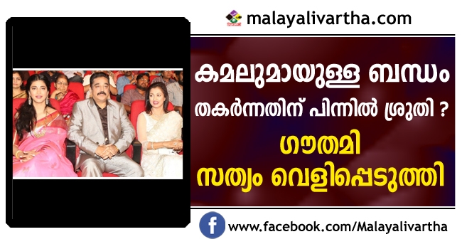 കമൽ ഹാസനും ഗൗതമിയും പതിമൂന്ന് വർഷത്തെ ബന്ധം അവസാനിപ്പിച്ച് വേർപിരിഞ്ഞത് ആരാധകരെ ഞെട്ടിച്ചിരുന്നു. അവിവാഹിതരായി ജീവിച്ചതിനാൽ നിയമത്തിന്റെ നൂലാമാലകൾ കൂടാതെ തന്നെ അവർ വേർപിരിഞ്ഞു. കഴിഞ്ഞ വർഷം ബ്ലോഗിലൂടെയാണ് ഗൗതമി കമലിനൊപ്പമുള്ള ജീവിതം അവസാനിപ്പിച്ചുവെന്ന് പ്രഖ്യാപിച്ചത്. എന്നാൽ കാരണമെന്തെന്ന് വ്യക്തമാക്കിയിരുന്നില്ല. കഴിഞ്ഞ ദിവസം ഒരു മാധ്യമത്തിന് നൽകിയ അഭിമുഖത്തിൽ ഈ കാരണം വ്യക്തമാക്കുകയാണ് ഗൗതമി.